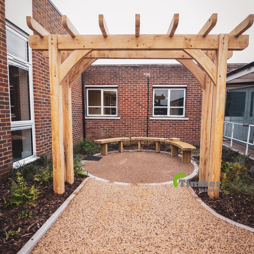 The school is thrilled with the addition of the oak pergolas—happy school, happy children. 😊🤳