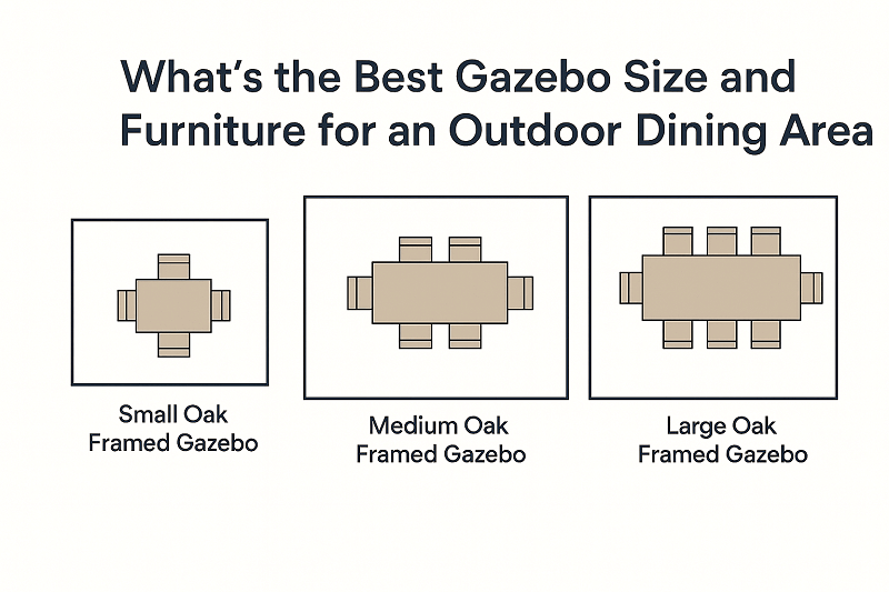 A well-sized oak gazebo enhances comfort, usability, and the overall outdoor dining experience.