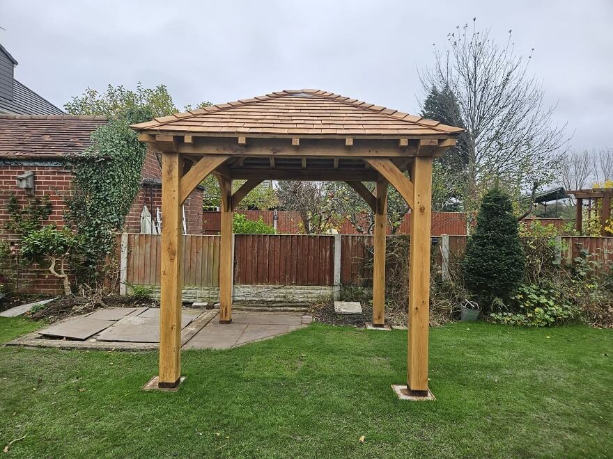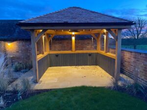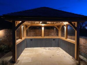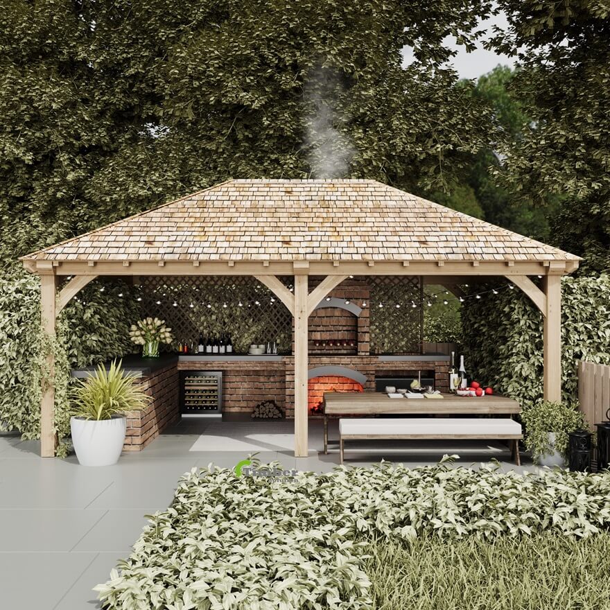 Large outdoor oak gazebo kits are pre-designed, ready-to-assemble structures crafted from high-quality oak wood. Oak is prized for its long-lasting durability and natural beauty, making it ideal for outdoor shelters. These kits include everything you need to easily set up a spacious, elegant gazebo in your garden or patio.