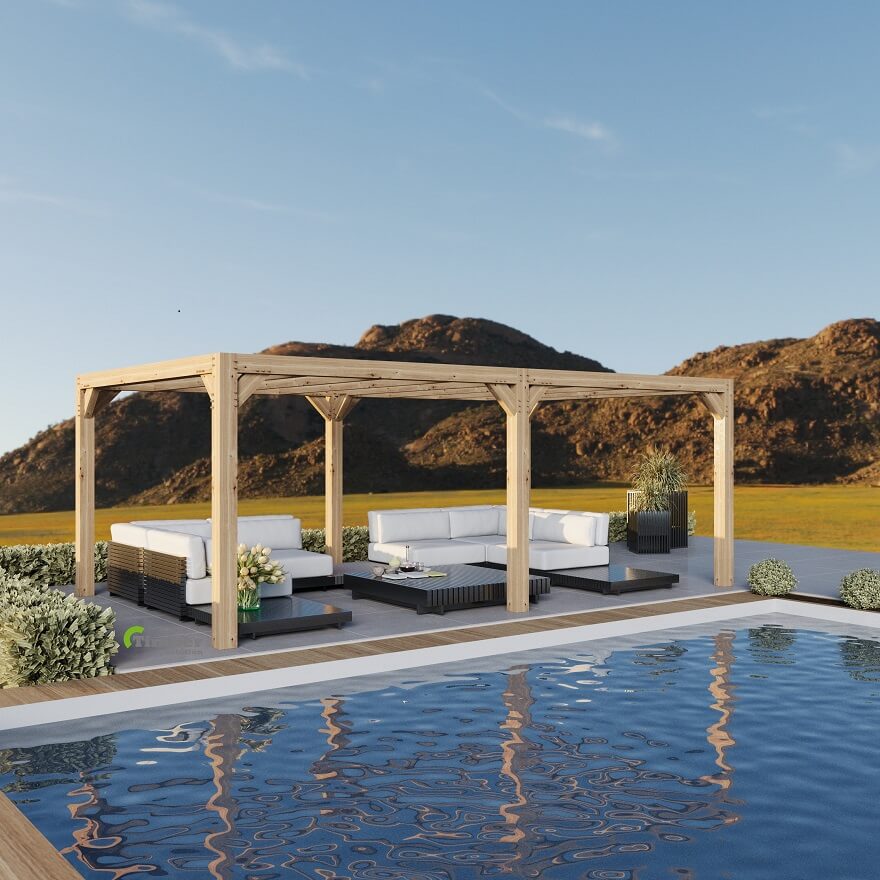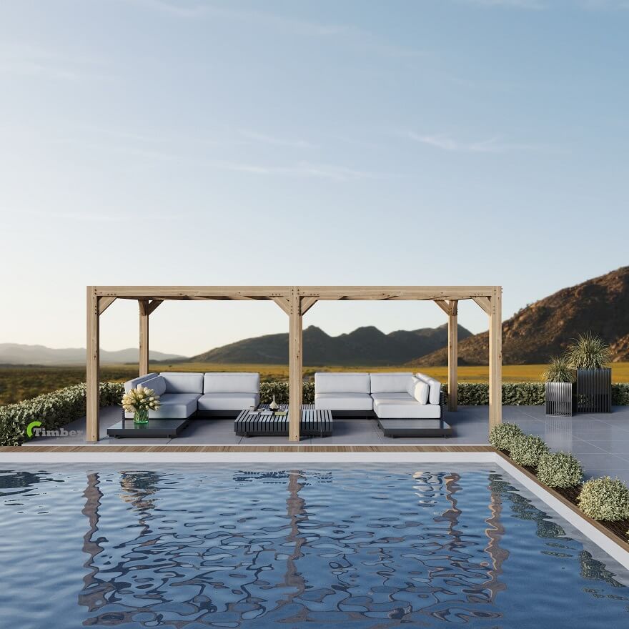 A classic oak pergola brings a sense of tradition, warmth, and character to any outdoor area. These pergolas are inspired by traditional architecture and handcrafted woodworking techniques, making them perfect for heritage homes and natural garden landscapes.