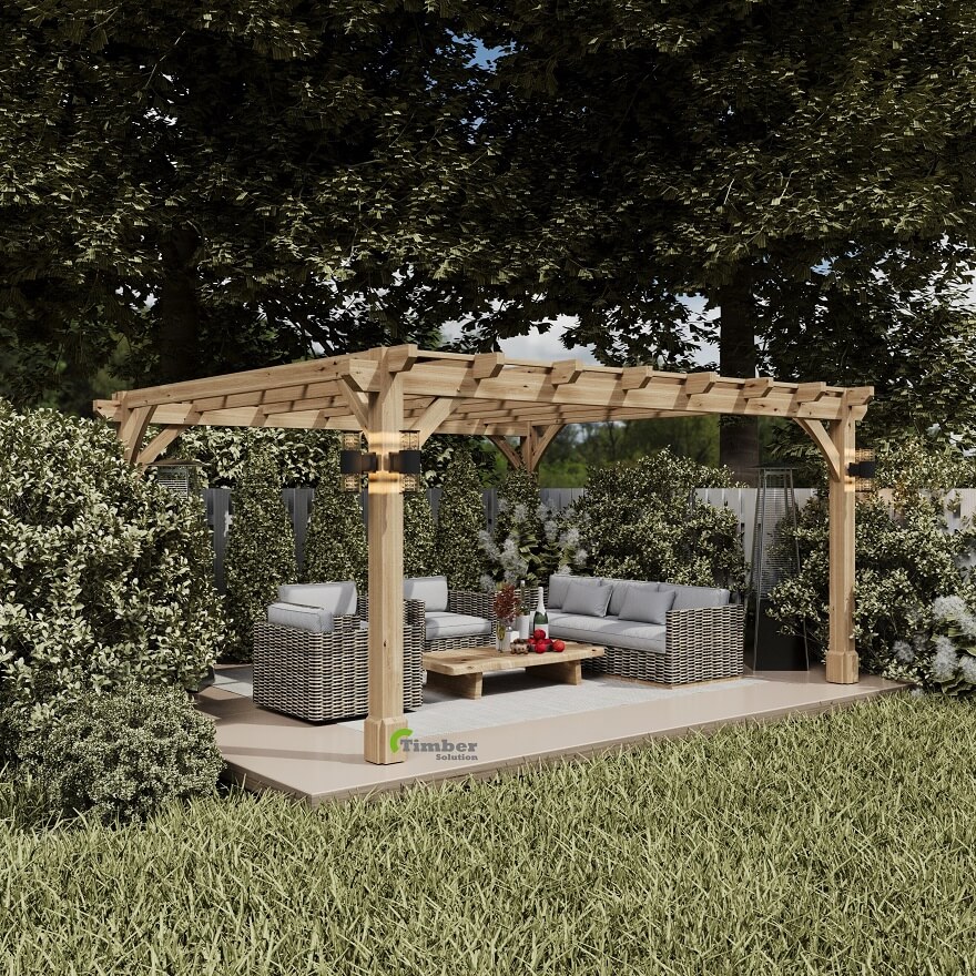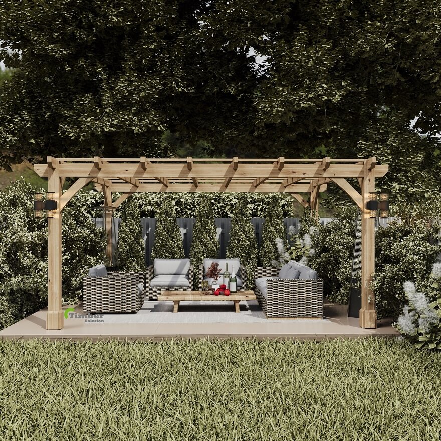 Timber Solution’s 4 × 4.5 m oak pergola kits combine craftsmanship and precision engineering for lasting strength and style. Each pergola is fully pre-cut and CNC-machined for millimetre accuracy, ensuring joints fit perfectly and assembly is fast and secure.