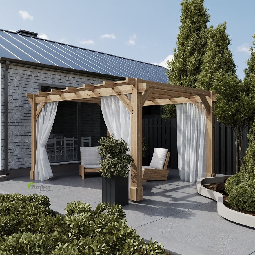 I can’t recommend Timber Solutions too highly. Right from the start Val was engaged and super-helpful. He spent a lot of time pulling together a bespoke design for a pergola that was exactly what we wanted: a structure that provided us with an outdoor room for entertaining. We wanted a clear plastic roof so it could be used in all weathers and Val was able to guide us to the best solution. Once ordered he kept us fully informed about progress and made suggestions to tweak the design where he thought it would improve the aesthetics. Delivery was on time and the high quality of the timber and machining was immediately apparent. Clear assembly instructions were included and Val was always available for support if/when we needed it. We are very very happy with the finished result! The quality and workmanship really stand out.