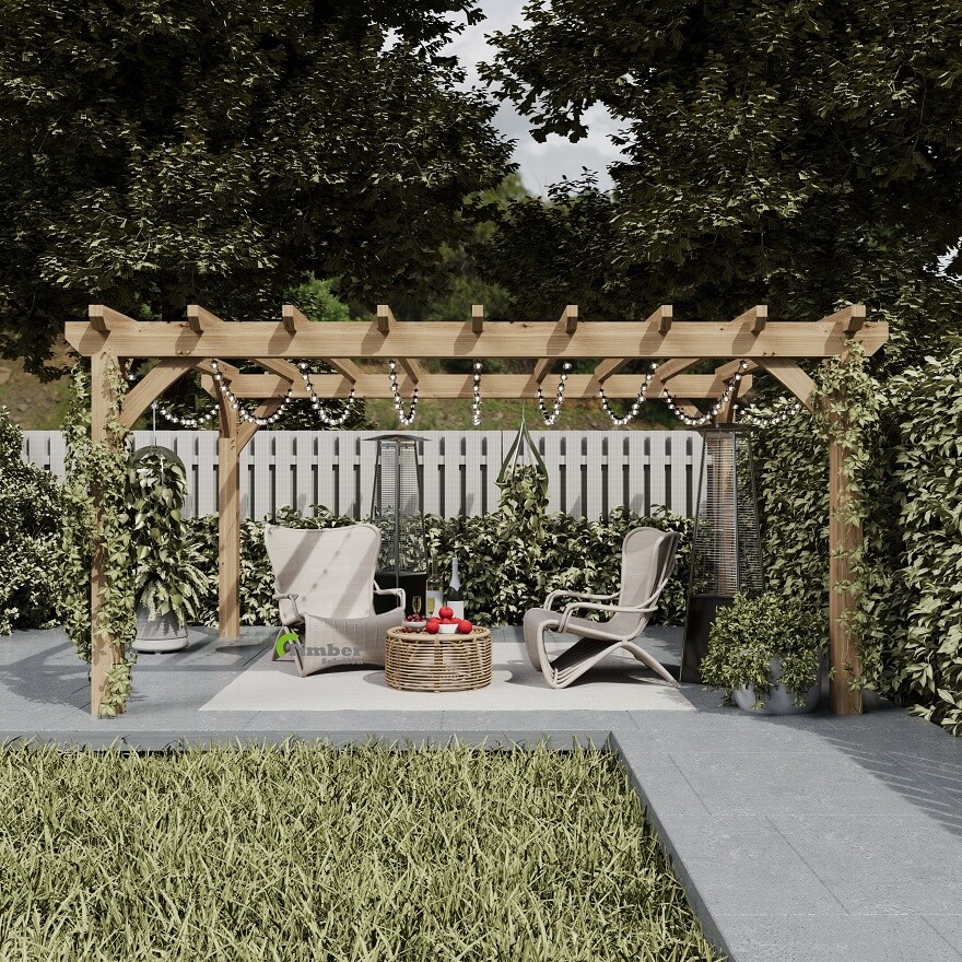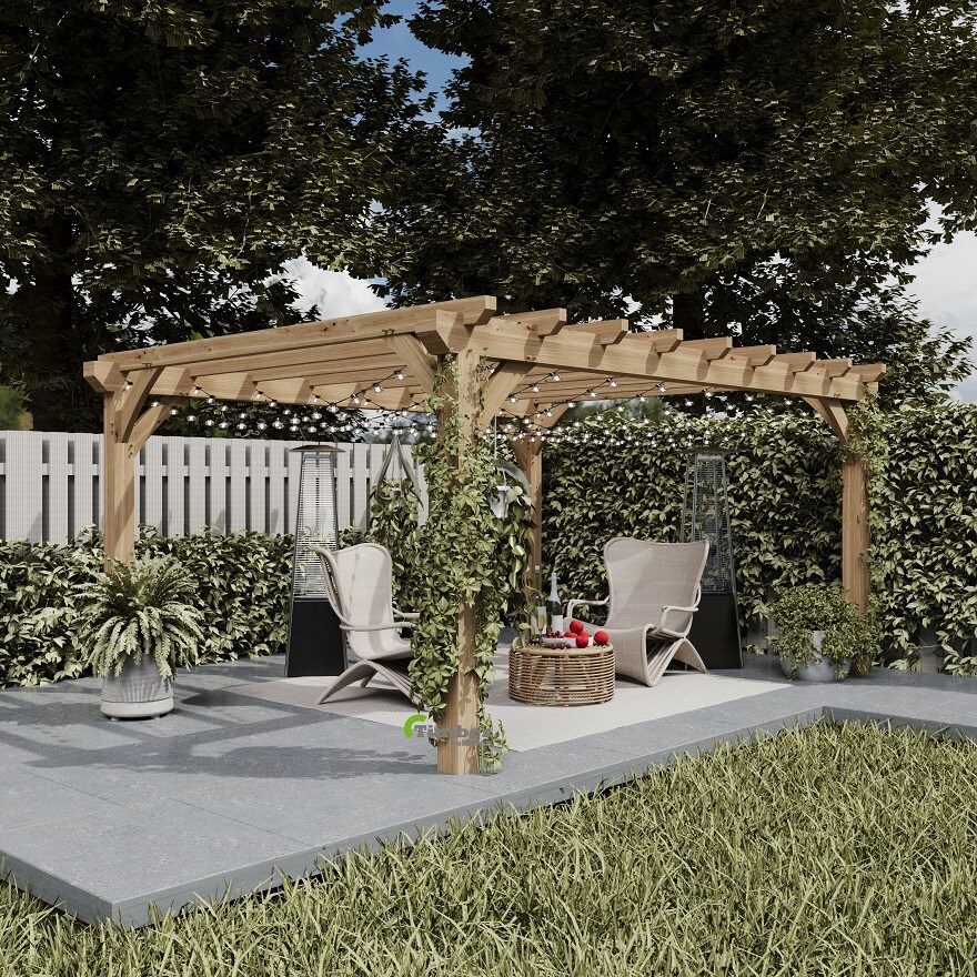 A central post can interrupt the flow and limit how you use the space beneath your pergola. Removing it creates a cleaner, more versatile layout, perfect for positioning a large dining set, hot tub, or outdoor sofa. However, a central-free design requires precise joinery and strong beams capable of supporting the added span — particularly once the structure exceeds 4.5 m.