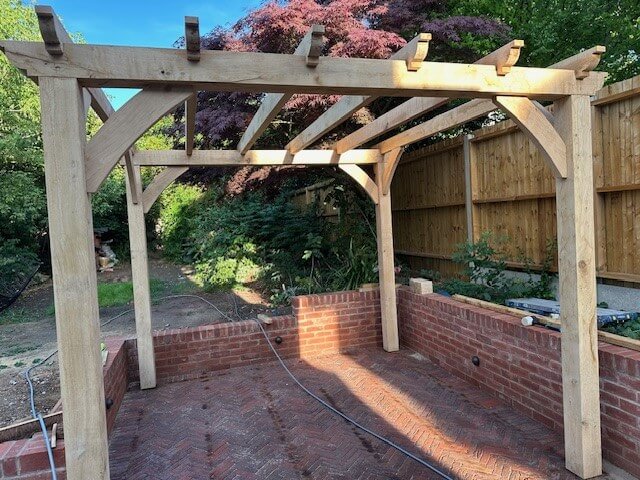 If you’ve recently added a green oak pergola, gazebo, or timber frame, you may have noticed dark brown stains on your paving or brickwork. These marks are caused by oak tannins – a natural compound in fresh oak that leaches out when wet. Although harmless to the wood, tannins can leave unsightly stains on porous paving, stone, or brick. The problem is strongest in the first year after installation.